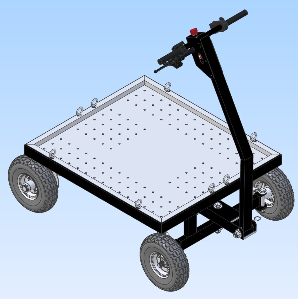 The Smart Ass Cargo Mule is a ruggedized motorized cargo carrier / motorized wagon that's based on the same Smart Ass Fuel Mule Chassis with utility and customization in mind. With a Heavy Duty Steel Flatbed Deck on our motorized chassis with hydraulic disc brakes, you can move your heavy payload anywhere you need!